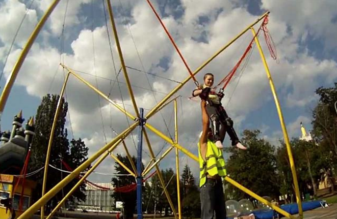 Веселый и экстремальный аттракцион для улицы. Время монтажа 45 мин. Комплектуется батутами любого диаметра, по желанию заказчика. Возможна установка иллюминации.