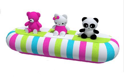 Принцип действия: качалка приводится в движение при помощи электродвигателя через редуктор. Покачиваясь то в одну, то в другую сторону качалка, то поднимается, то опускается. Держаться можно за игрушечных зверюшек, которые находятся на качалке. Во время работы аттракциона звучит музыка, громкость которой регулируется на блоке управления, расположенном под палубой корабля. Музыкальное сопровождение создает неповторимую атмосферу во время игр. Материал отделки - цветной баннер с блестками!