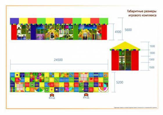 Длина24.5 м.Ширина5.2 м.Высота5.6 м.Количество уровней3ГоркаестьСухой бассейн с шарикамиестьБатутестьДля улицыестьВозраст детей от3 летСрок монтажа30 дн. -