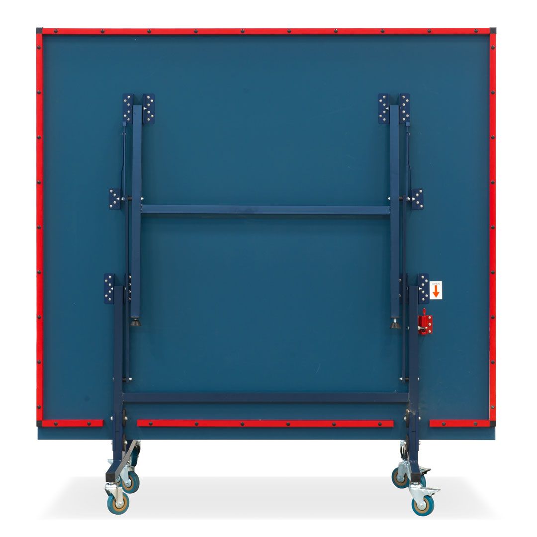 - Складная конструкция позволяет легко хранить стол и тренироваться в одиночку, благодаря вертикальному положению одной из половин столешницы;